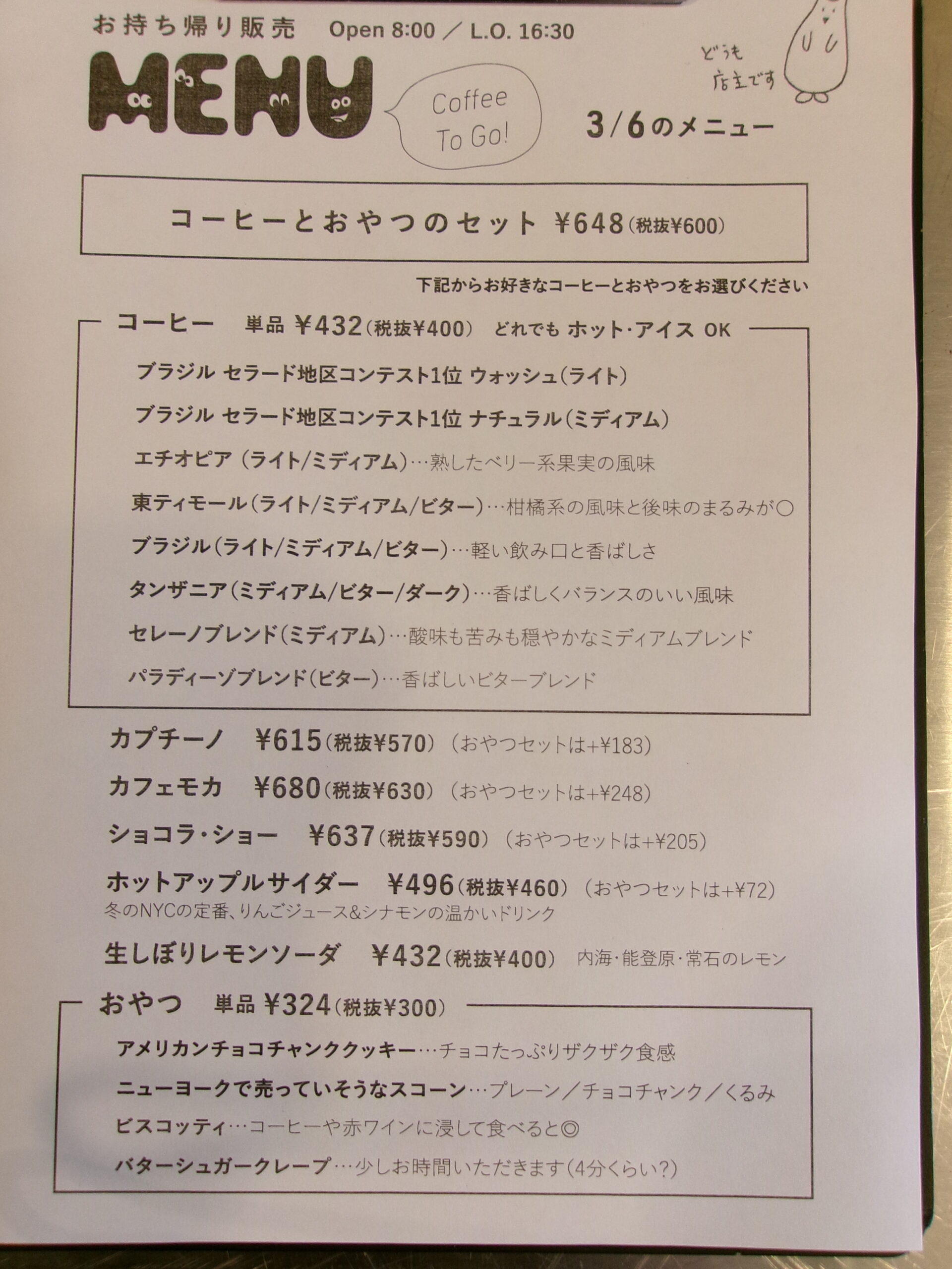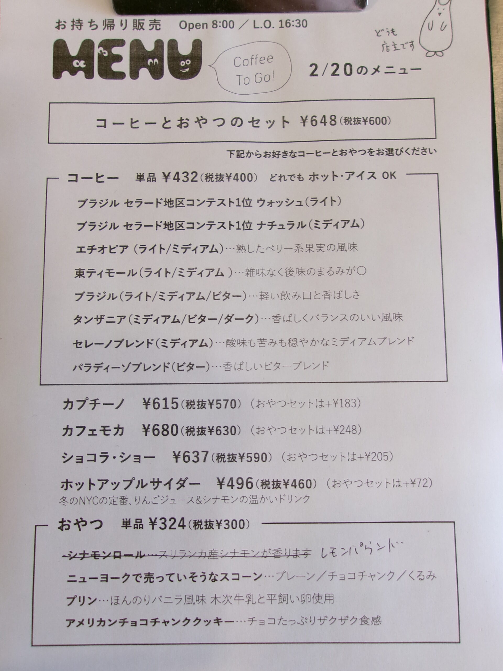 コーヒーとおやつのセット ¥648-