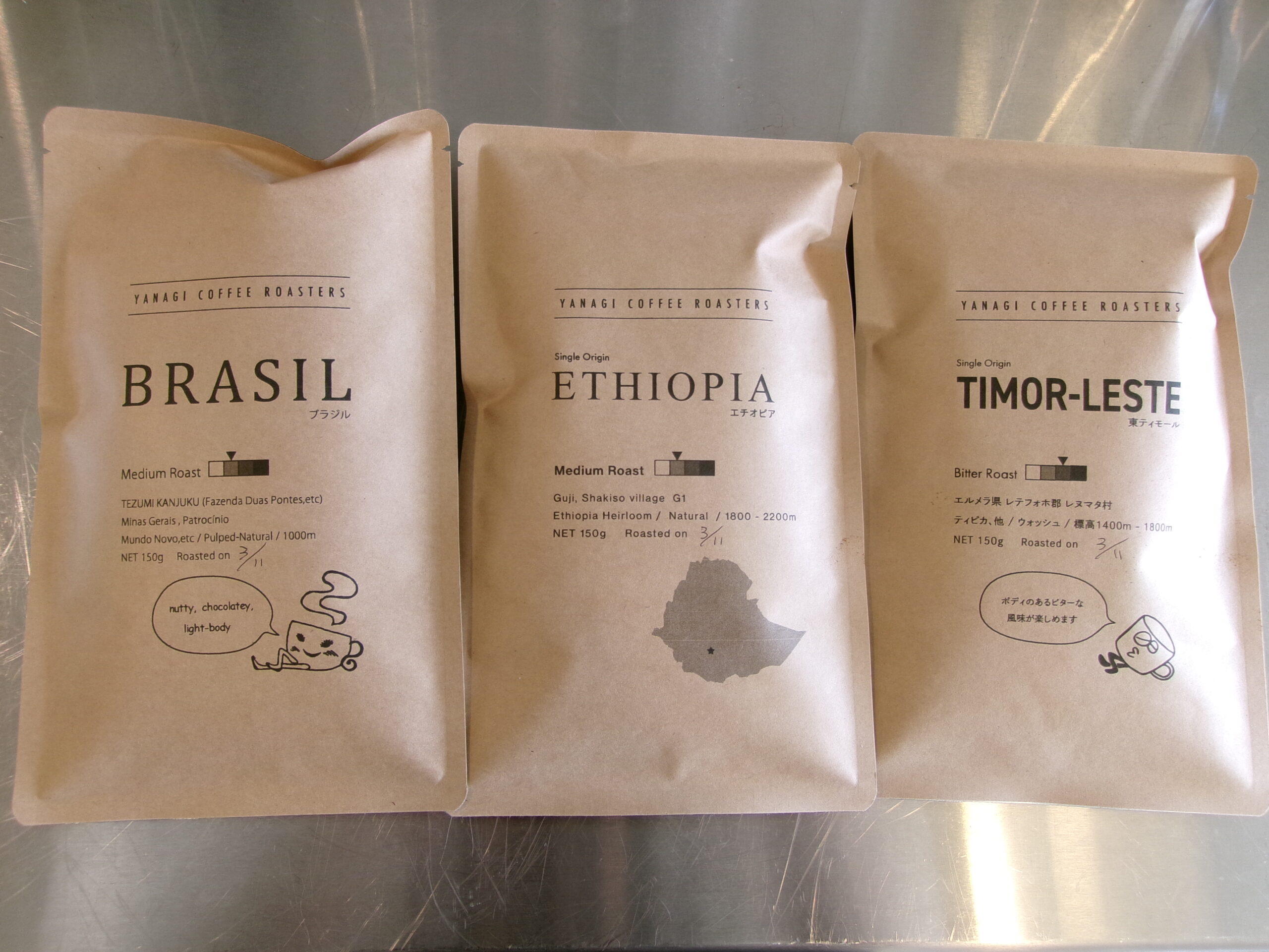 今日現在の在庫は下記の3点と東ティモールのミディアムのドリップバッグになります