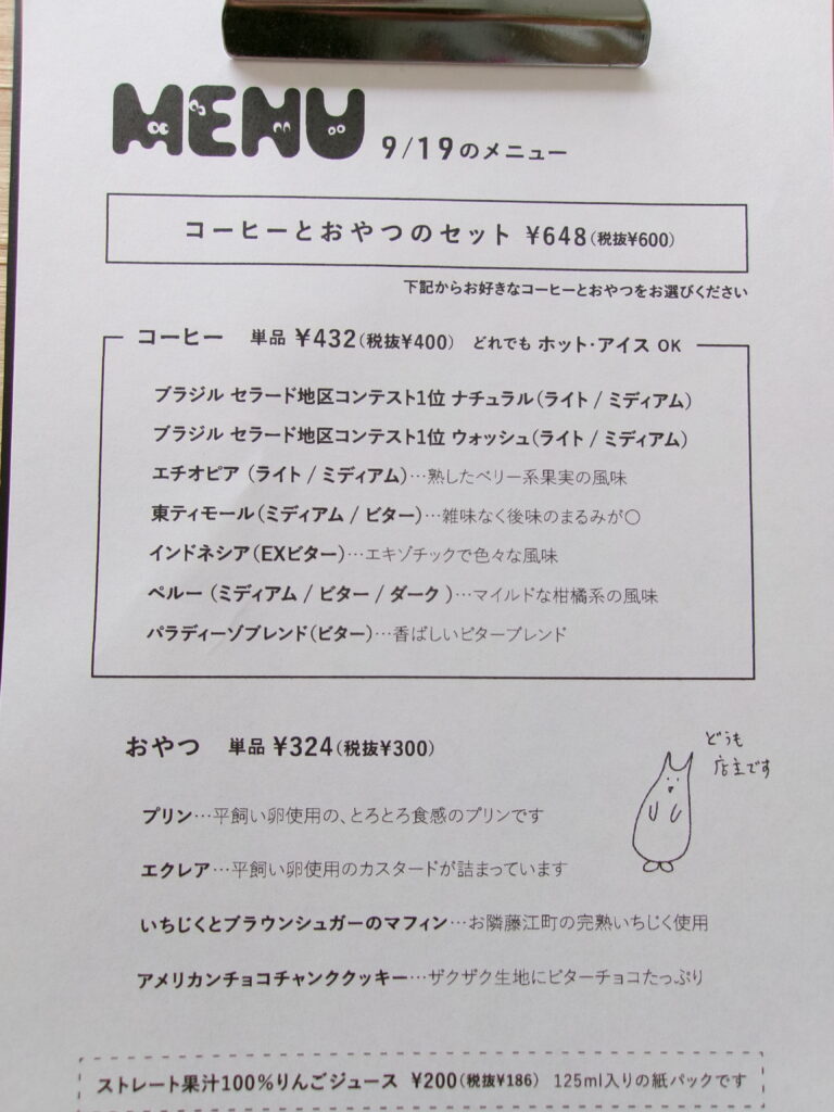 毎週金曜日の8時から17時半までテイクアウトでコーヒー豆やおやつを店頭販売しております